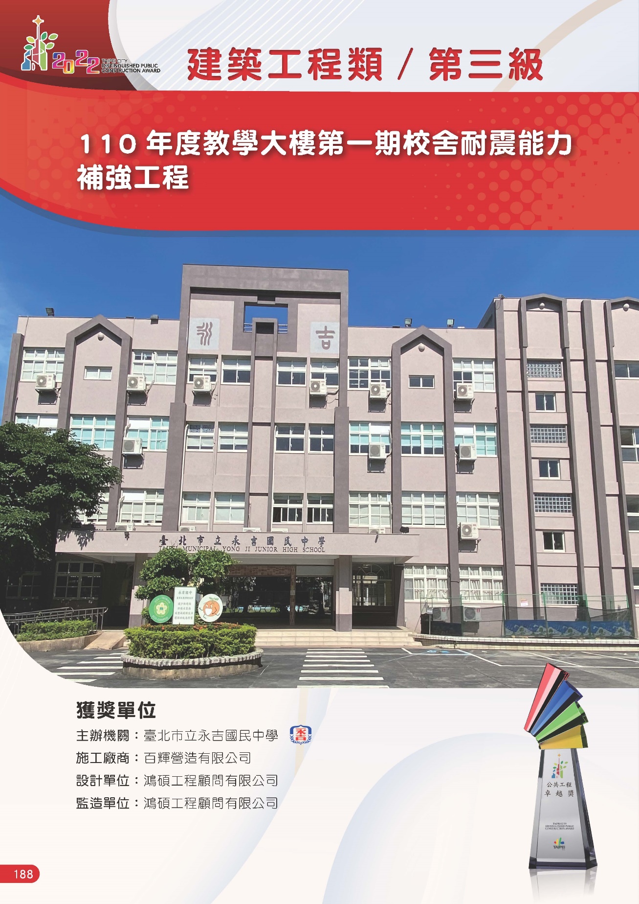 ▲ 榮獲111年度台北市公共工程卓越獎